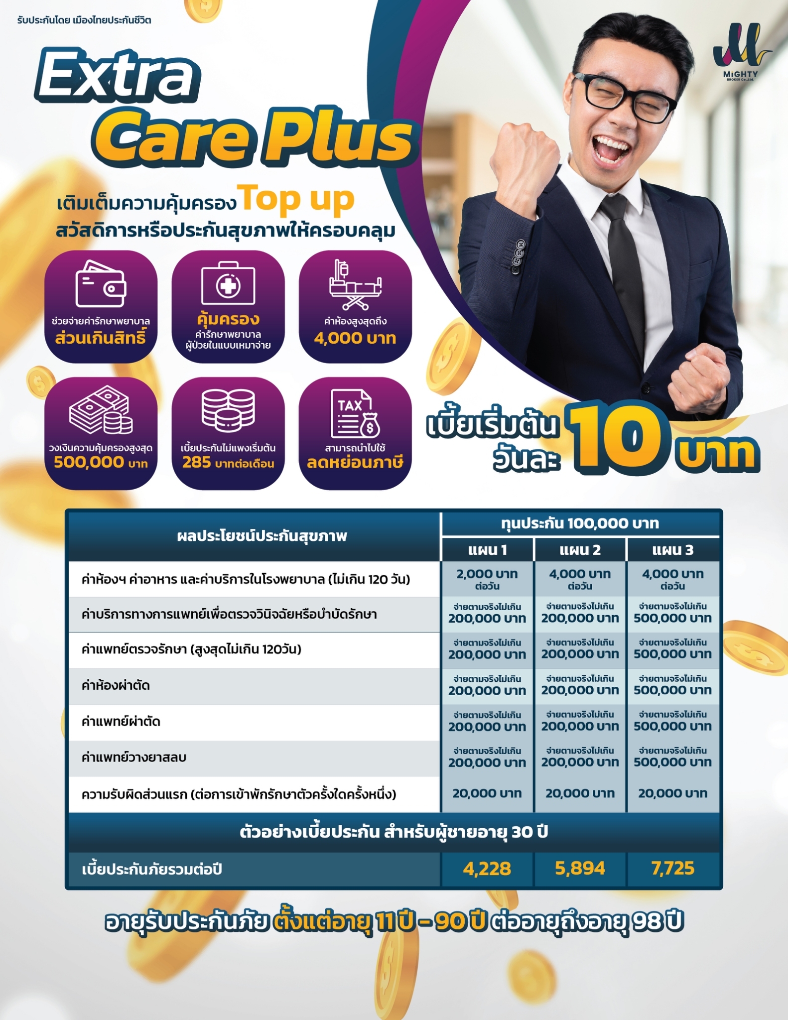 แผนประกัน Extra Care Plus เติมเต็มความคุ้มครอง