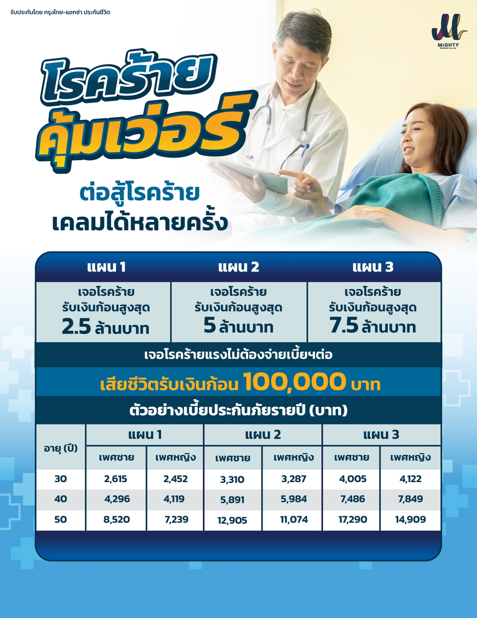 ตารางเบี้ย ประกันโรคร้ายคุ้มเว่อร์