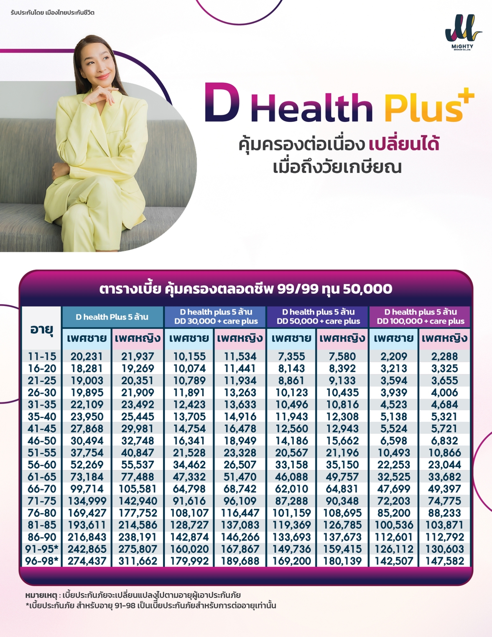 ตารางเบี้ยประกัน D Health Plus