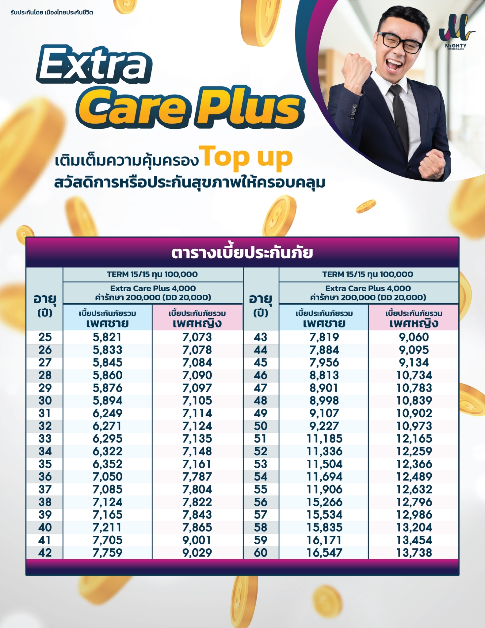 ตารางเบี้ยประกัน Extra Care Plus Top Up