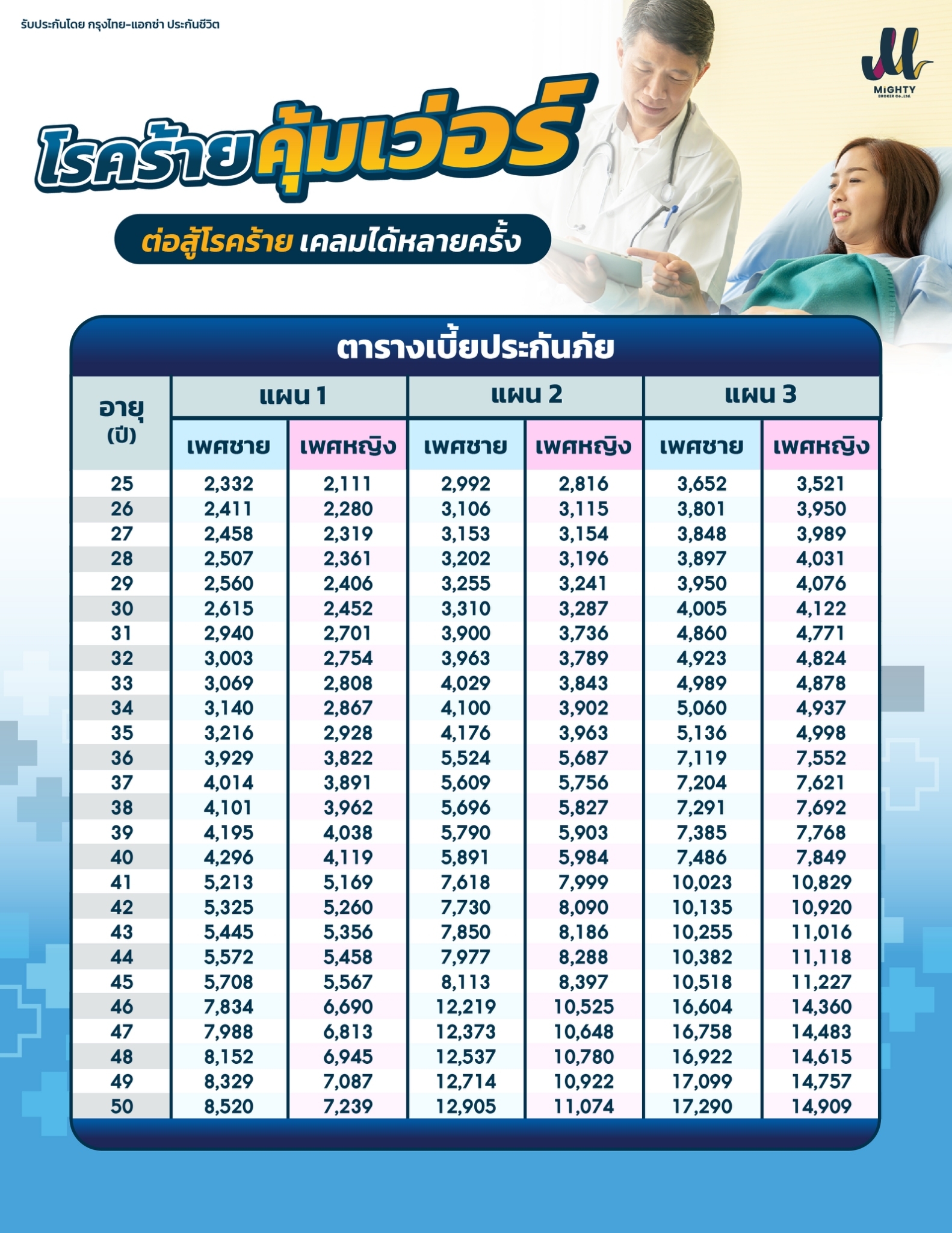 ตารางเบี้ย ประกันโรคร้ายคุ้มเว่อร์